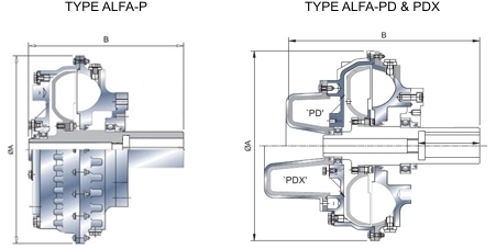 The ALFA-P series fluid couplings are engineered for belt drive systems and available in multiple variants—with or without Delay Fill chambers. Featuring a standard V-Pulley or optional timing pulley, these couplings are designed to meet a variety of transmission requirements. Built with an aluminum body and cast iron pulley, the ALFA-P range delivers robust power transfer with temperature-sensitive safety mechanisms.