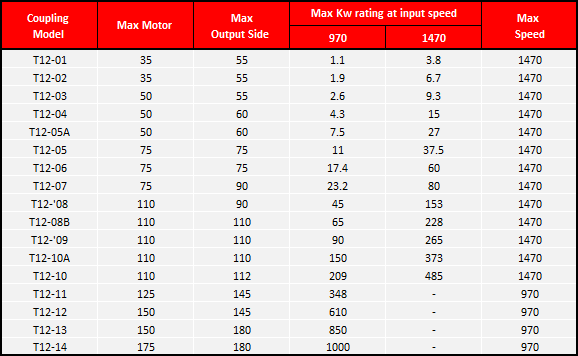 The T-12 series fluid couplings are radially removable and designed with a resilient input plate and metallic disc flexible coupling on the output side. They offer robust performance in demanding applications, supporting up to 1000 kW at 6 poles. With optional steel body configurations for mining and standard aluminium for general use, T-12 couplings ensure efficient torque transmission, motor protection, and ease of installation and maintenance.