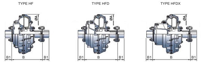 These are radially displaceable fluid couplings with metallic disc flexible coupling on input & output ends.